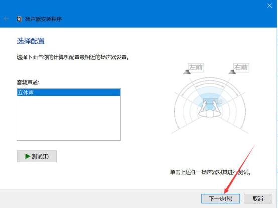5.在弹出的窗口中,选择立体声,再点击“下一步”按钮,完成扬声器的配置,kk录像机便可以顺利地将电脑声音一起录制了。