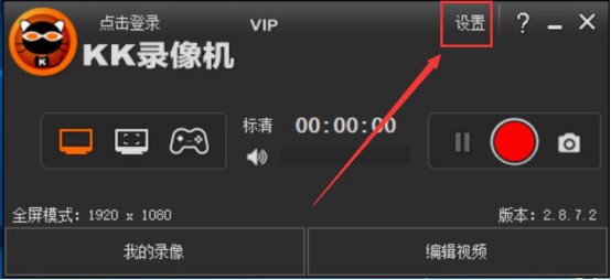 1.打开kk录像机,点击主界面右上方的“设置”,从而进入设置页面。