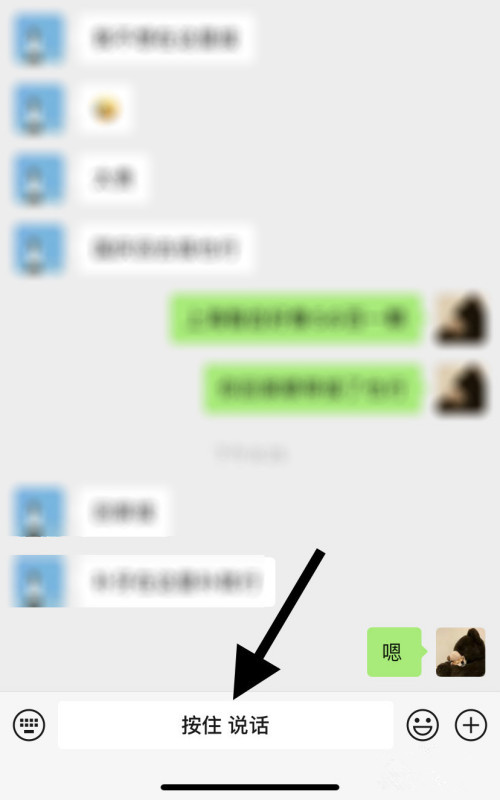 打开手机微信,进入界面,选择一个聊天窗口,如图,点击下方的【按住说话】,
