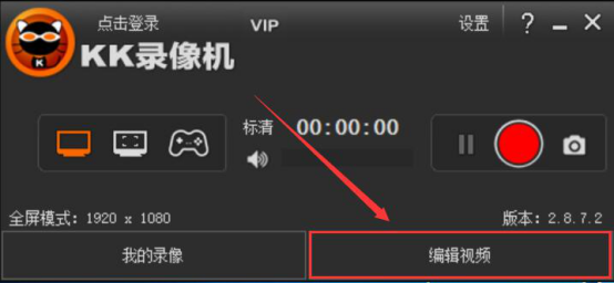 1.打开kk录像机,点击界面“编辑视频”按钮。