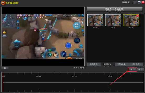 3.将需要kk录像机合并的多个视频分别导入,再点击“保存”按钮,即可得到合并后的视频。