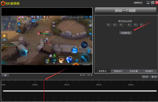 3.将指针定位到需要剪切的位置,再点击“添加剪切区”按钮。