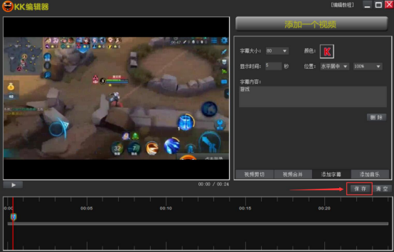 4.kk录像机为视频添加字幕后,点击“保存”按钮即可保存起来。