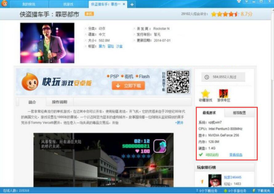 3.接下来,进入该游戏的详情页面。在此页面的右侧,可以从“最低要求”和“推荐配置”中看到该游戏的配置检测结果。