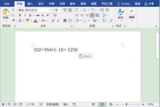 7.最后,我们便可以看到word计算器将数据的结果给统计出来了。