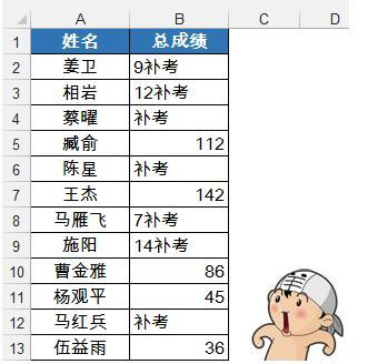 1、这里我们以一个班成绩为例,比如我们将考0分的成绩全部替换“补考”