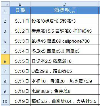 4、 一个单元格录入多项数据。很多新手为了省力,常常将Excel当Word使用,同一个单元格中输入多项数据,这样的话后续数据就无法进行筛选、数据转图表等数据处理了。所以在Excel录入时要注意一项内容占一个单元格,万不可因为贪图一时方便给后续数据处理工作埋下苦果。