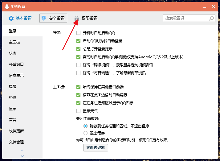如果你是使用QQ账号登录游戏,就在电脑中打开QQ,进入面板,点击【主菜单】——【设置】,
