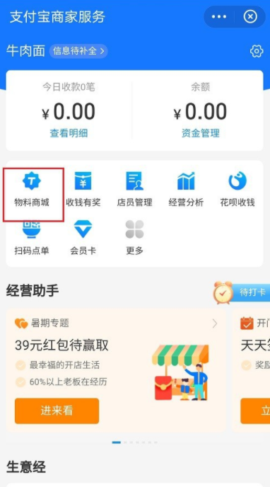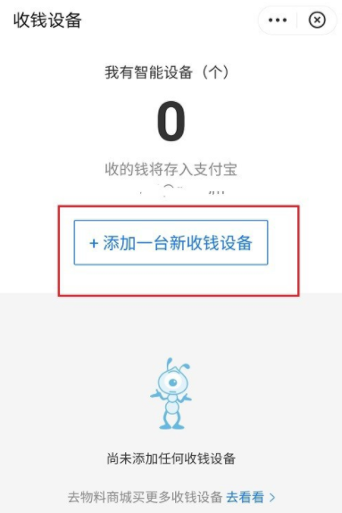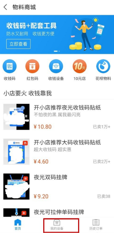 进入物料商城,如图,点击【我的设备】,查看收钱设备,点击【添加一台新收钱设备】,