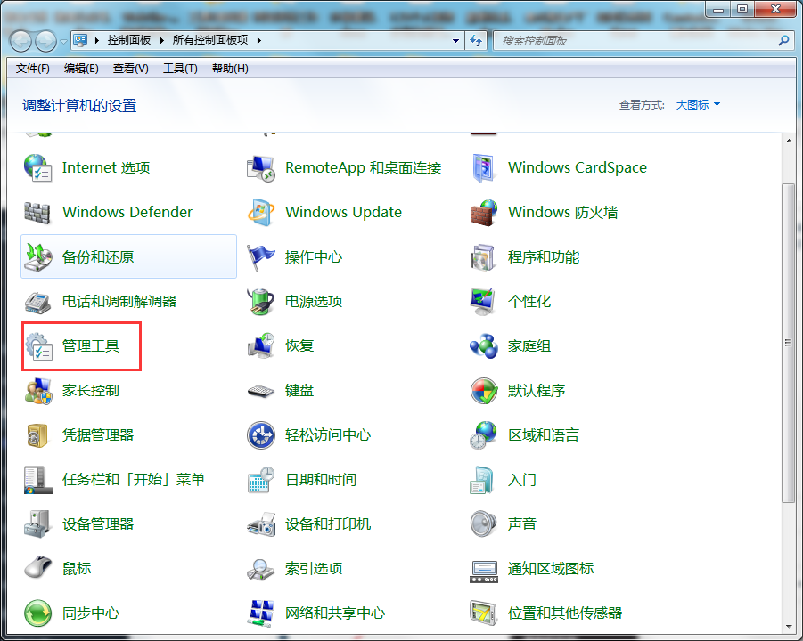 2.在控制面板窗口有个“管理工具”,点击进去