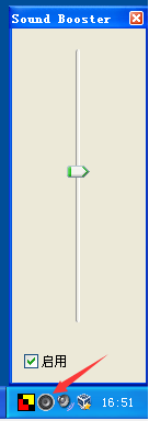 2、运行该软件,然后在桌面右下角找到黑色小喇叭状的图标并点击,拖动滑块调大音量放大百分比即可。