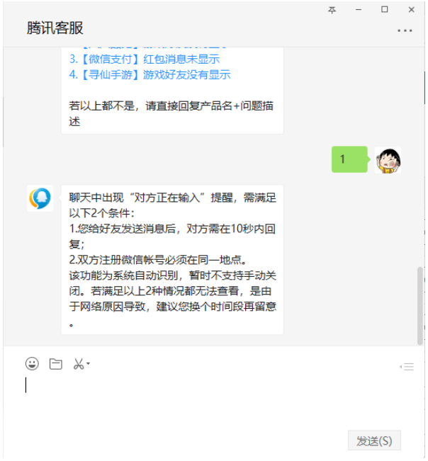 另外,只要对方10秒内在输入框输入文字,就算他没有继续打字,你的聊天窗口也会显示“对方正在输入...”的字样。