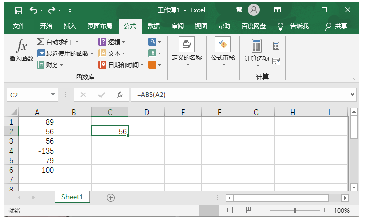 8、如图,现在已经将Excel单元格内的所有负数转变成正数数值.