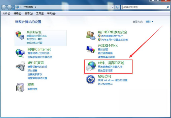 2.然后,打开电脑的控制面板,从“时钟、语言和区域”中点击“更改显示语言”。
