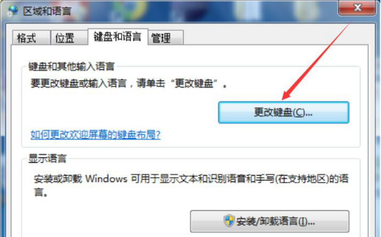 3.进入“区域和语言”的设置窗口,切换至“键盘和语言”选项卡,点击“更改键盘”按钮。