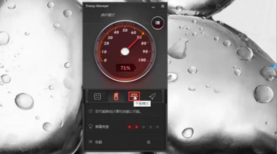 4.而如果是在日常办公或者持续上网时间久的话,就可以调整为“节能模式”。因为联想电源管理软件的这种模式能节电并且减少电脑的性能损耗。