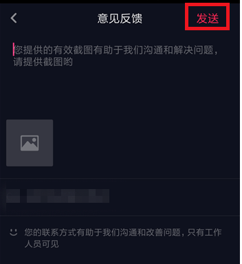 进入意见反馈窗口,如图,将自己被盗用的短视频作品进行举报,然后点击【发送】即可。