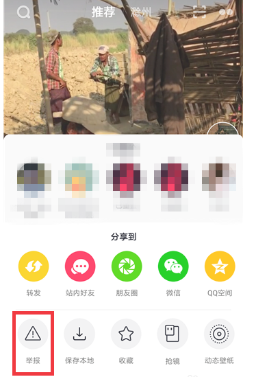 此时底部会弹出菜单选项,如图,点击【举报】,