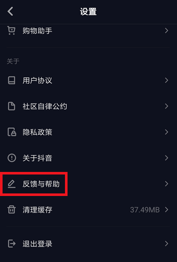 进入设置界面,点击【帮助与反馈】选项,