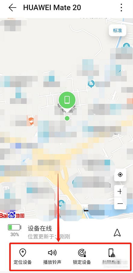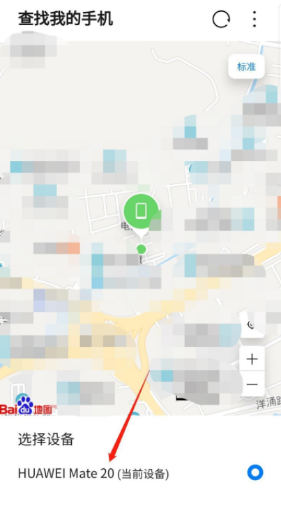 1、点击【定位设备】,即可在地图中精确定位手机所在位置。