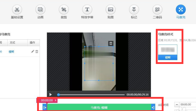 6.确定马赛克样式和时间,通过轨道条可以调整,编辑好后,直接点击完成就可以了。