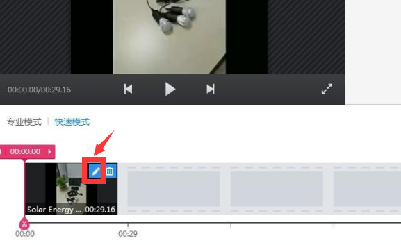 4.我们选择快速模式,点击铅笔形的图标开始编辑视频片段