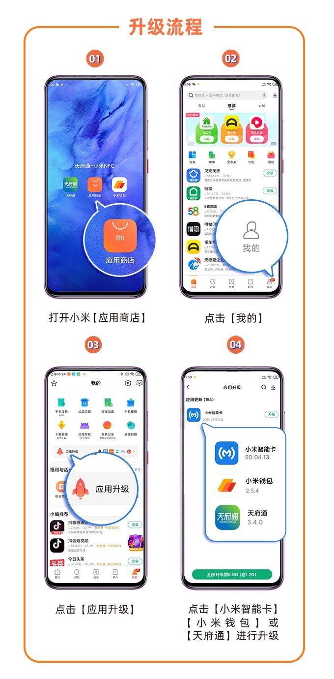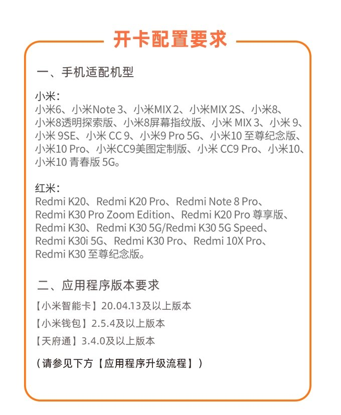 首先,你的手机必须为适配机型小米智能卡、小米钱包以及天府通 App 不能为旧版本。