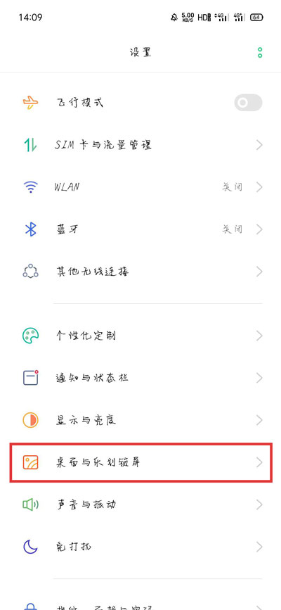 2、首先打开手机的【设置】,在设置中选择【桌面与乐划锁屏】,ColorOS 7以下版本选择【桌面与锁屏杂志】;