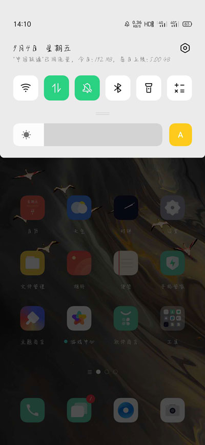 5、最后返回手机桌面,在任意位置下滑打开的是通知栏而不是全局搜索;