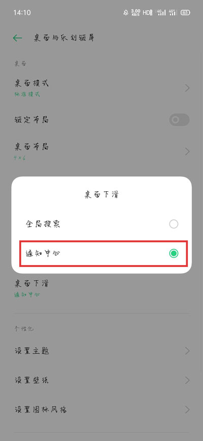 3、然后下滑选择 【桌面下滑】设置,点击进行修改;