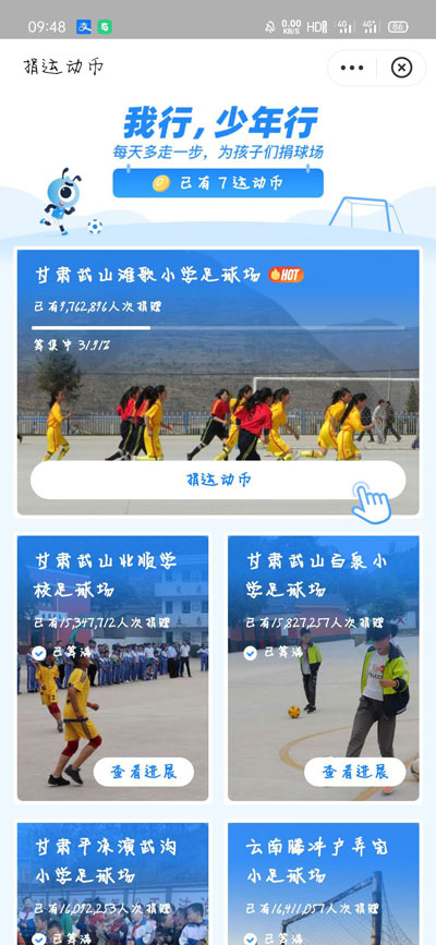 7、梦想球场:捐赠运动币,为孩子们捐赠球场;