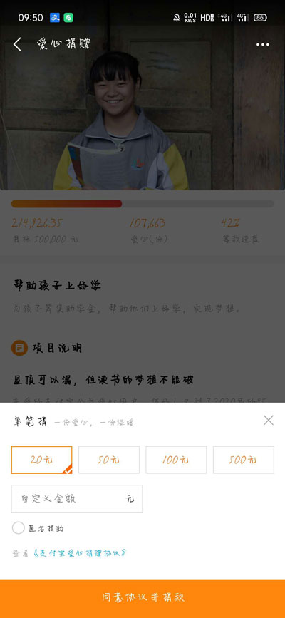 8、圆梦课堂:选择一项公益项目,点击“捐赠善款集徽章”,为需要帮助的孩子捐出一份小小爱心;