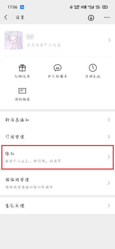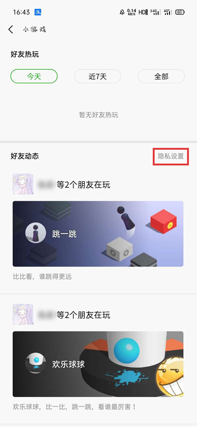 6、微信小游戏的动态还可以进入【微信小游戏】小程序内,点击【隐私设置】;