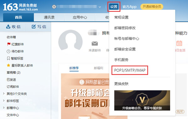 3、登录需要开启IMAP服务的邮箱,然后选择【POP3/SMTP/IMAP】设置;