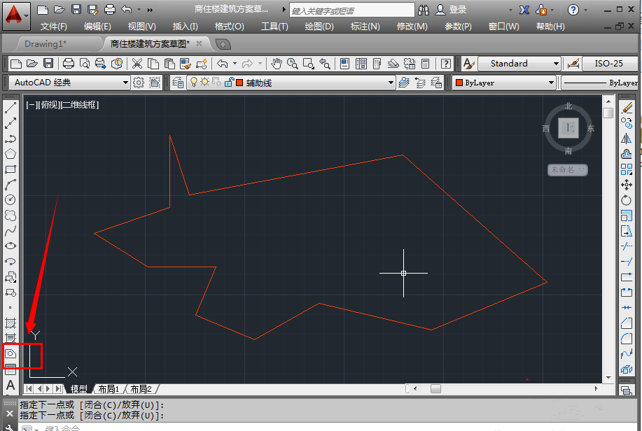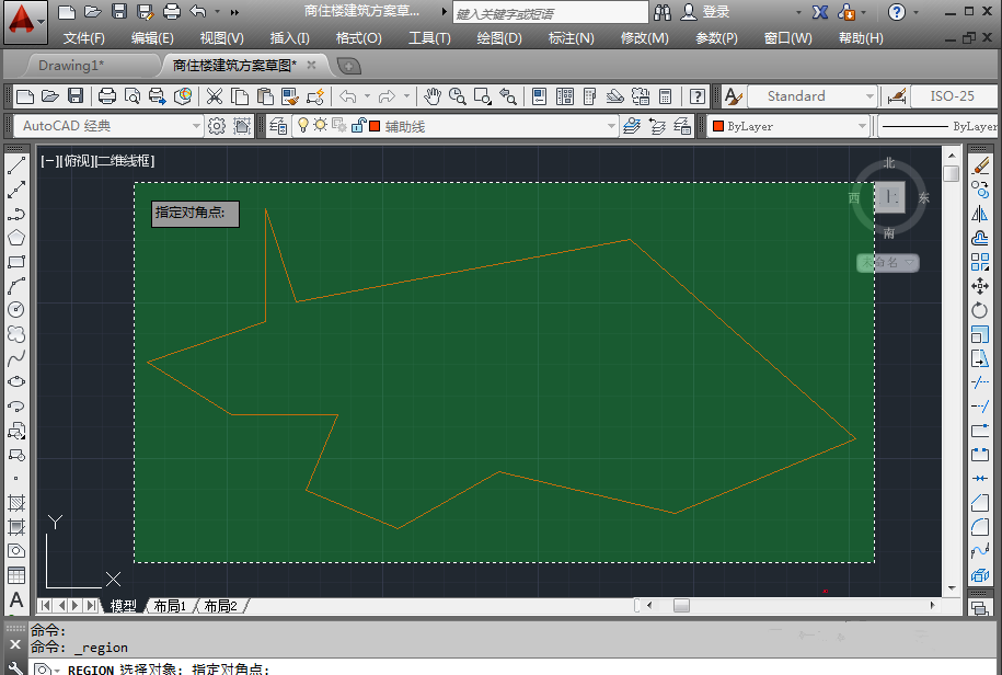 2、进入绘图界面,点击左侧栏的面域图标,或者是在菜单栏点击【绘图】——【面域】,
