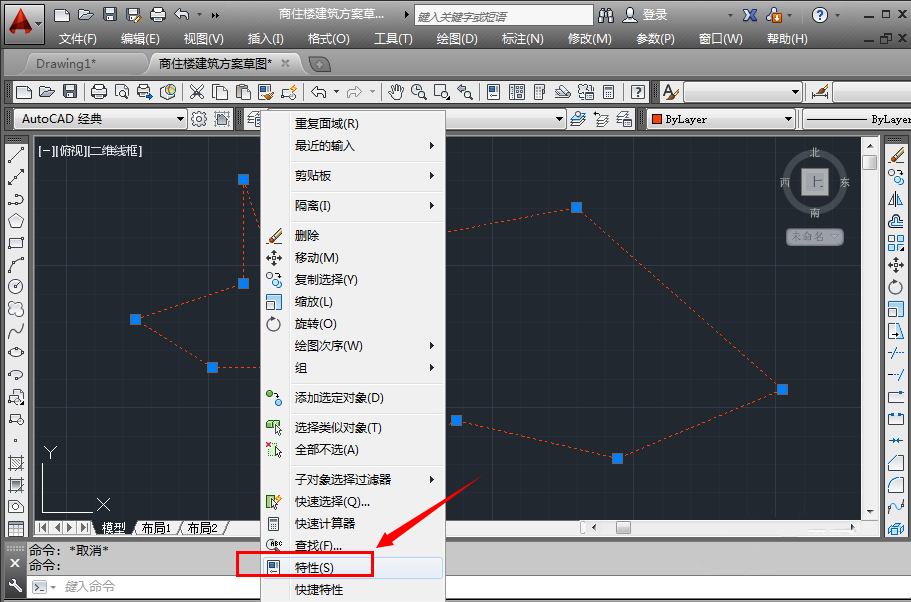 5、例如,你可以使用面域查看图形的面积,尤其是不规则图形的面积,点击这个面域,激活它,