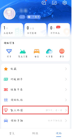 进入个人中心,如图,找到并点击【家人地图】,