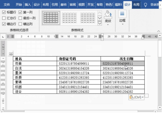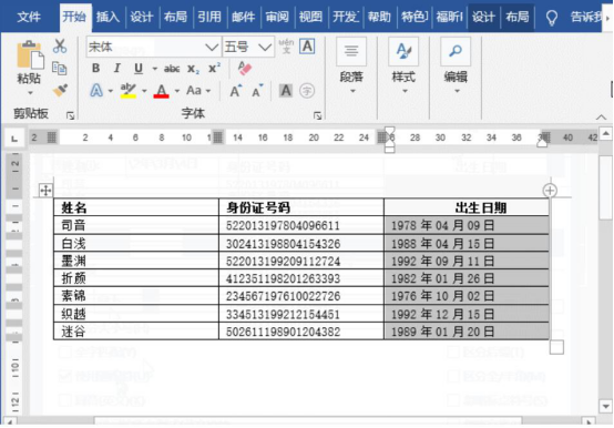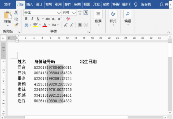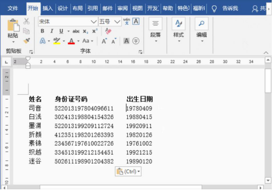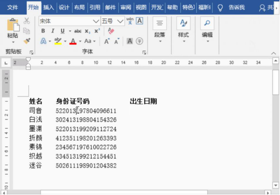 6.最后,在word中便可以看到身份证的出生年月日被提取出来了。