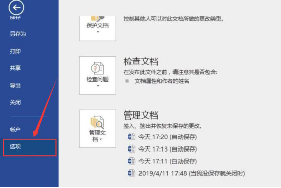 5.除了以上两种方法来解决word打字时后面的字消失的问题,还可以点击文档的“文件”菜单,从中点击“选项”。