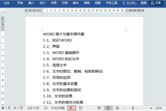 4.此外,当word打字时发生后面的字消失的时候,我们按一下键盘的“Insert”键,便可以快速切换至“插入”状态,就能正常编辑文档了。