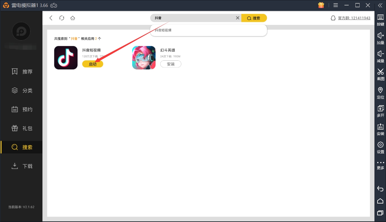 本文就以提取抖音视频为例进行讲解,打开雷电安卓模拟器,进入界面,在游戏中心下载ES文件管理器和抖音APP并启动,