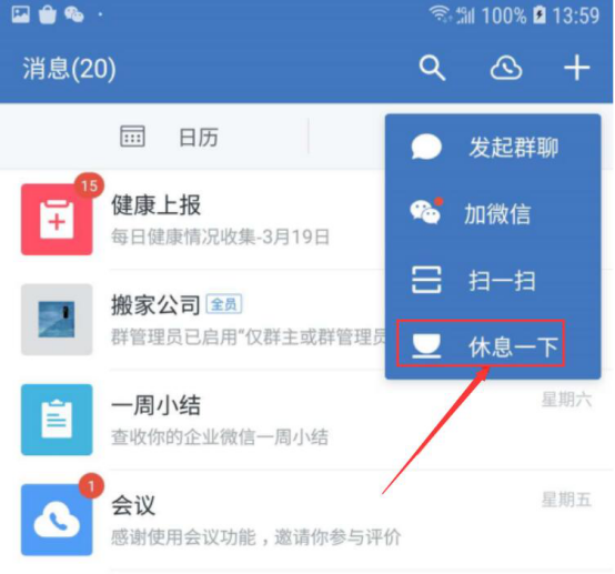 3.然后,在其弹出的菜单列表中点击“休息一下”。