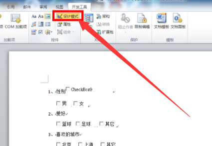 3.打开开发者工具,在这个功能下面有个“设计模式”,选择这个模式才能插入复选框
