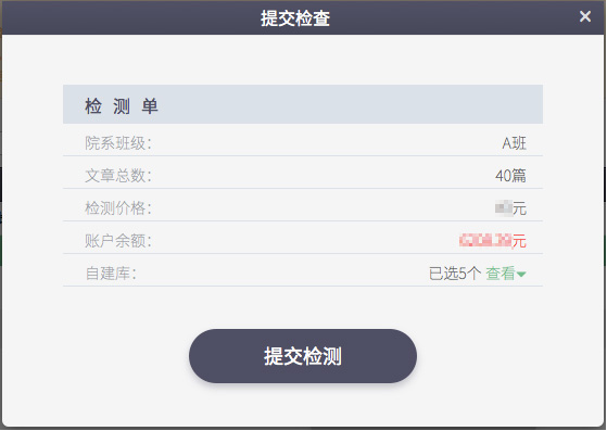 9、这时会弹出一个名为“提交检查”的弹窗,用户再确认一下检测信息,最后点击【提交检测】。