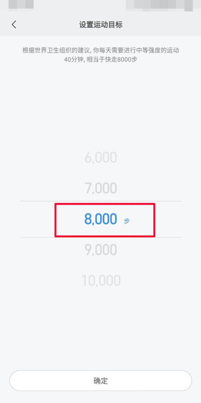 4、最后上下滑动,选择需要运动目标的步数,点击【确定】;