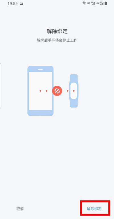 4、接着会出现一个“解除绑定后手环将会停止工作”提示,仍然选择【解除绑定】;