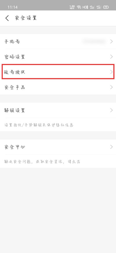 4、在安全设置页面,点击【账号授权】进入管理支付宝账号绑定的第三方账号;