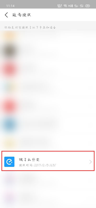5、最后在账号授权中,找到【饿了么外卖】,点击进入解除绑定;
