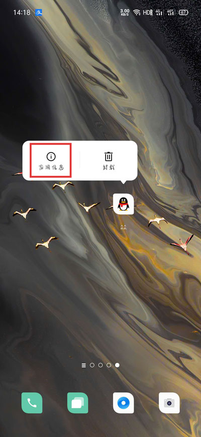 4、也可以在桌面上长按QQ ,选择【应用信息】进入;