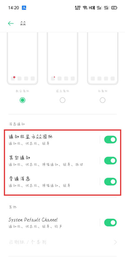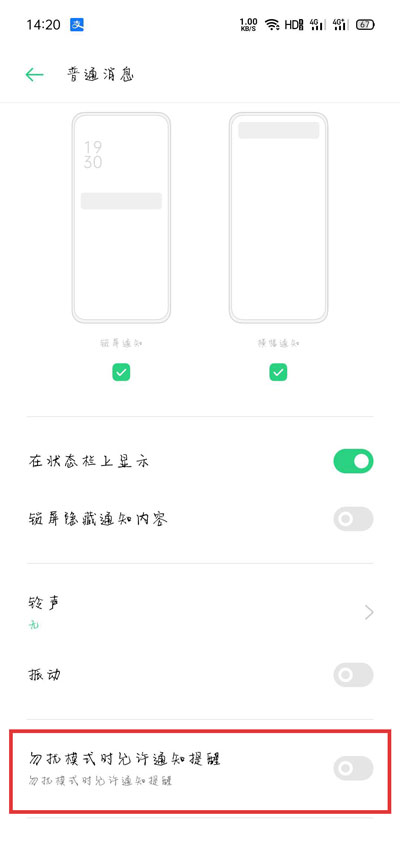 7、以普通消息为例,点击进入设置后,下滑开启【勿扰模式时允许通知提醒】设置,即可在免打扰时,也可以收到消息提示。